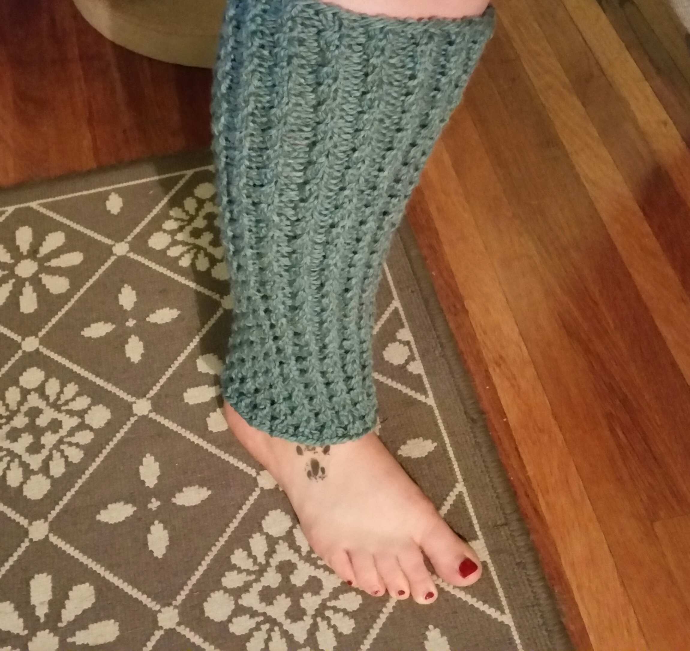 I’ve been super fucking lazy about posting, because I’ve been doing a lot of cat sitting lately. Whenever I have a little spare time, all I want to do is knit and watch Parks and Rec (because chubby Chris Pratt – am I right?). I’m in the process of making these really fucking awesome legwarmers. I’m going to wear them with my leggings (as pants), and be all around adorable (see pic to right).